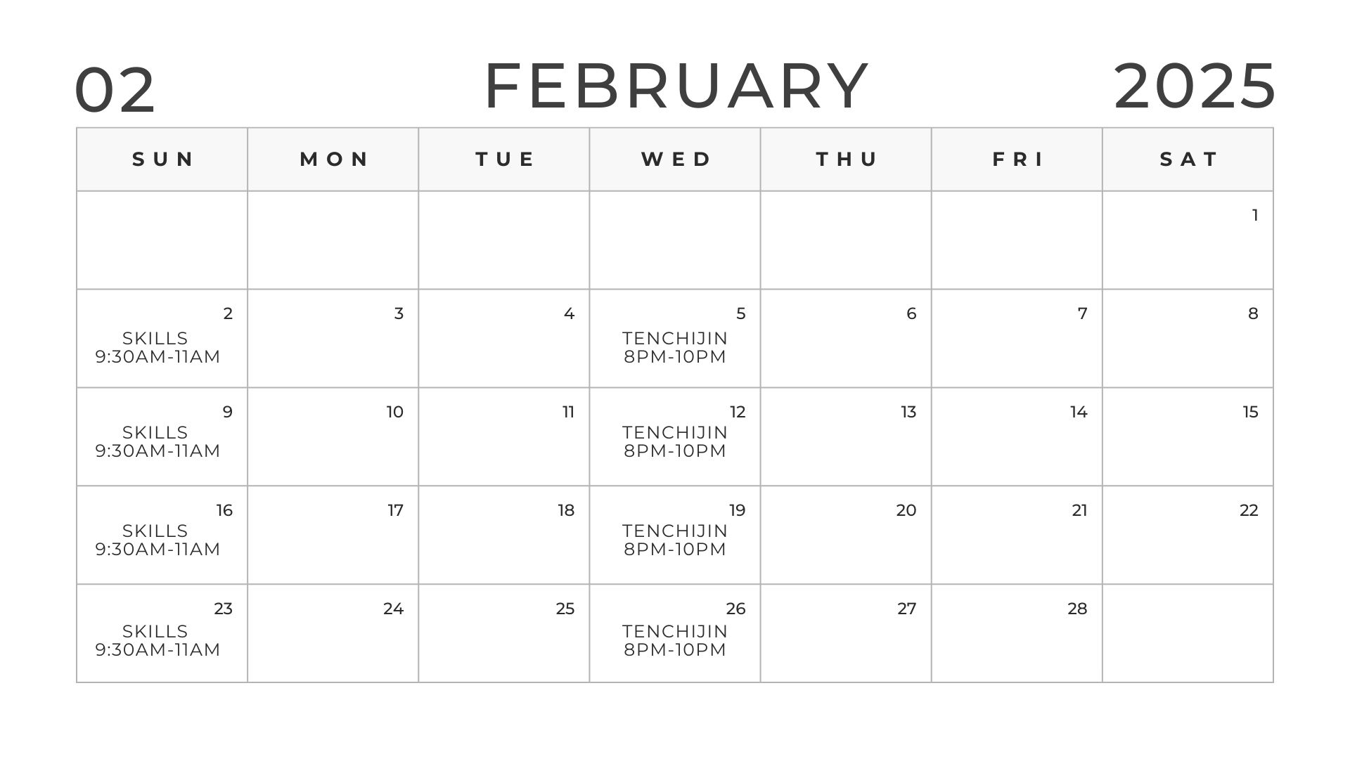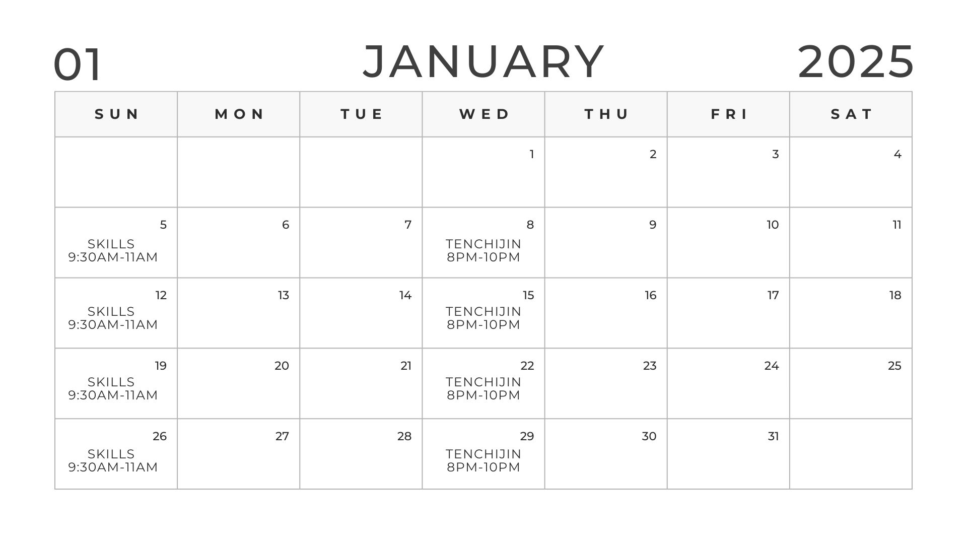 Regular classes pull material from the Tenchijin. From basic to advanced, anyone can participate.